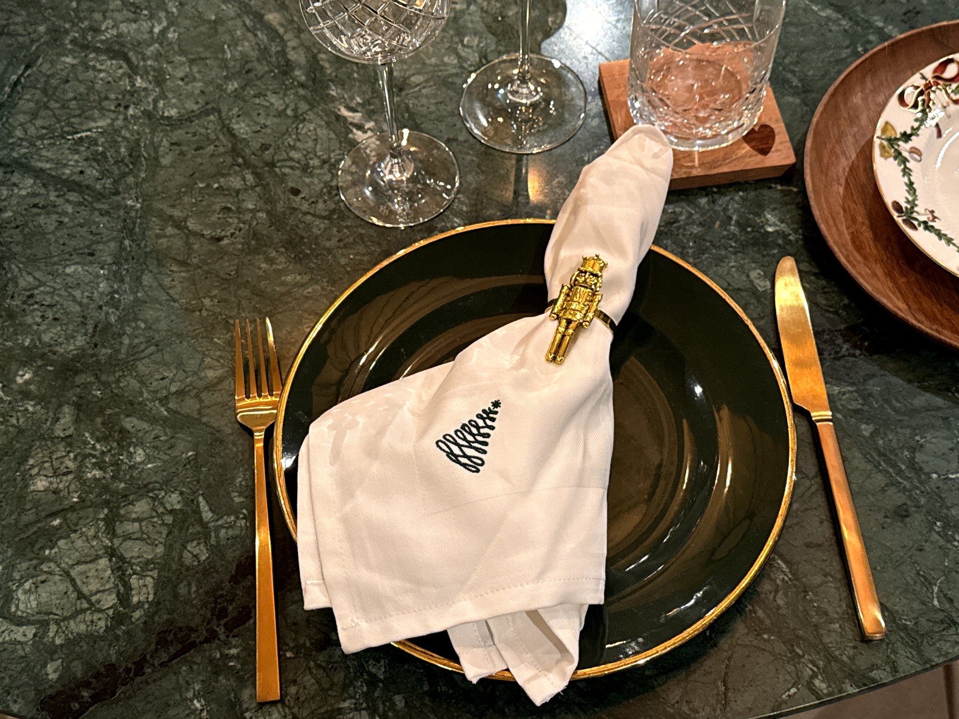 Outlet - Hvid serviet med grønt juletræ med grøn stjerne