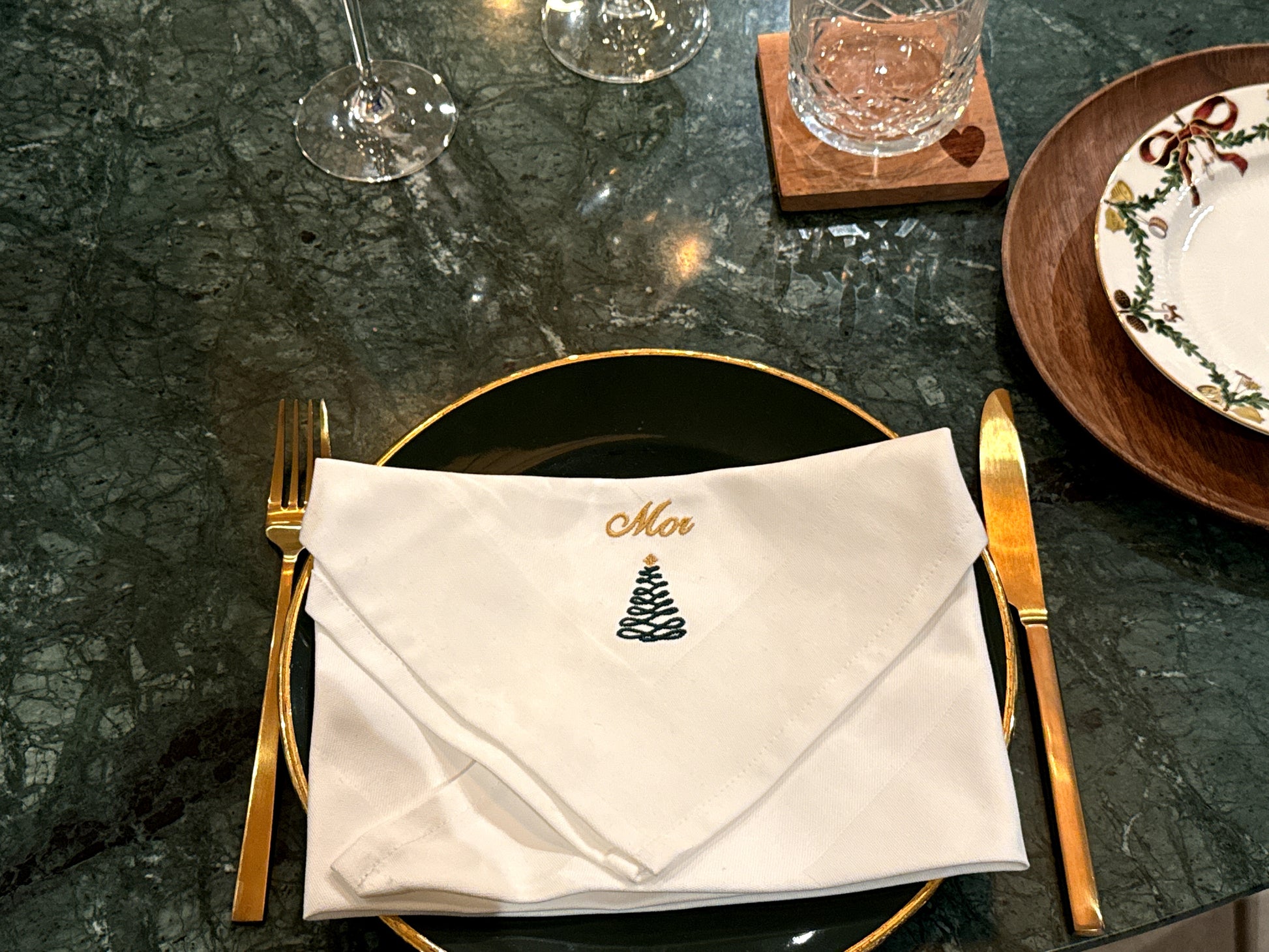 Outlet - Hvid serviet med juletræ og Mor navnebroderi